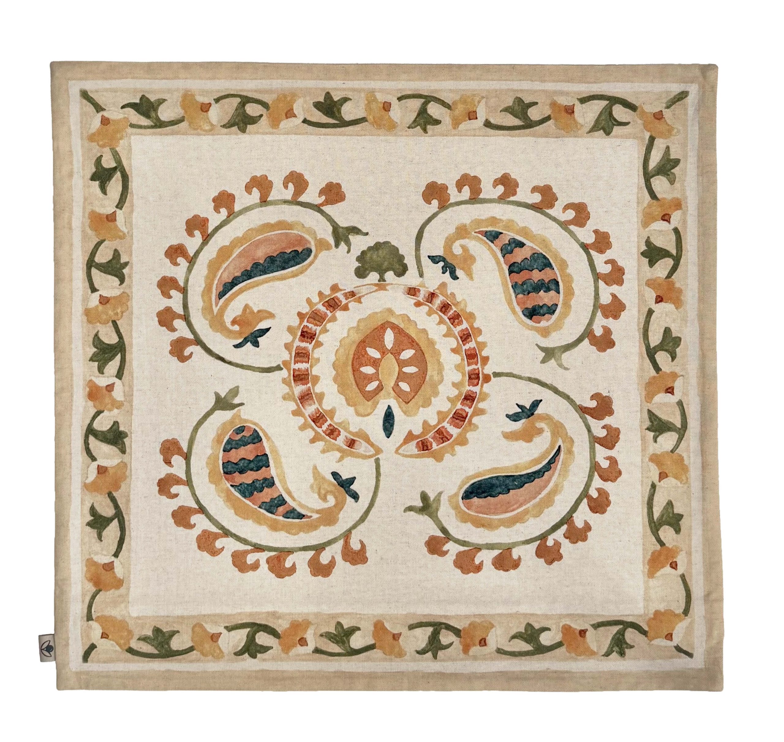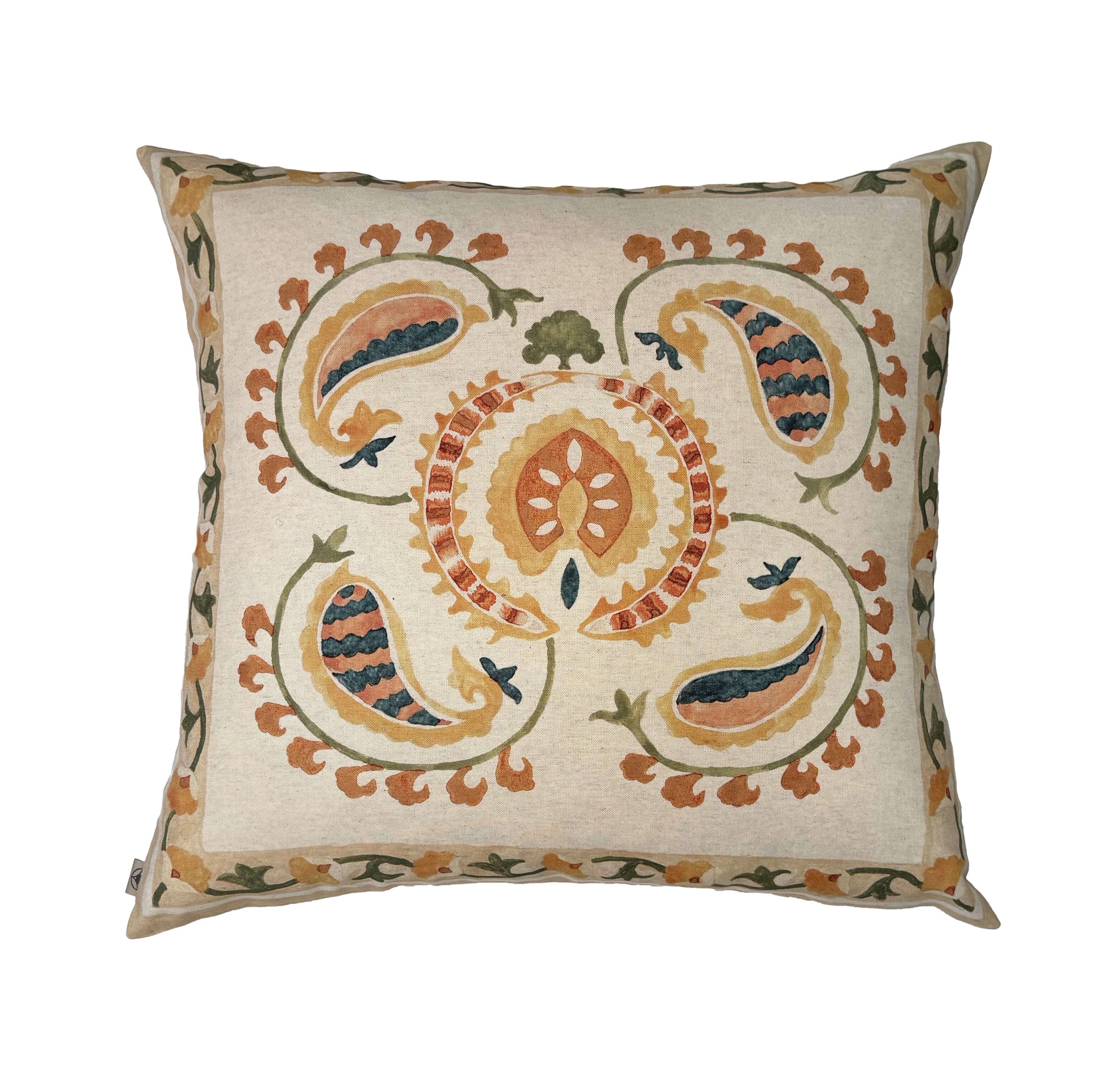 The Paisley Twirl design was custom created by hand, then printed onto a linen/cotton blend cushion