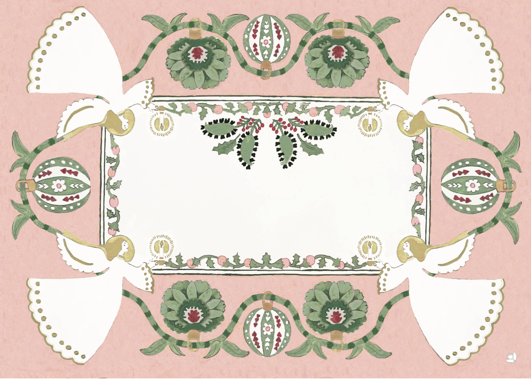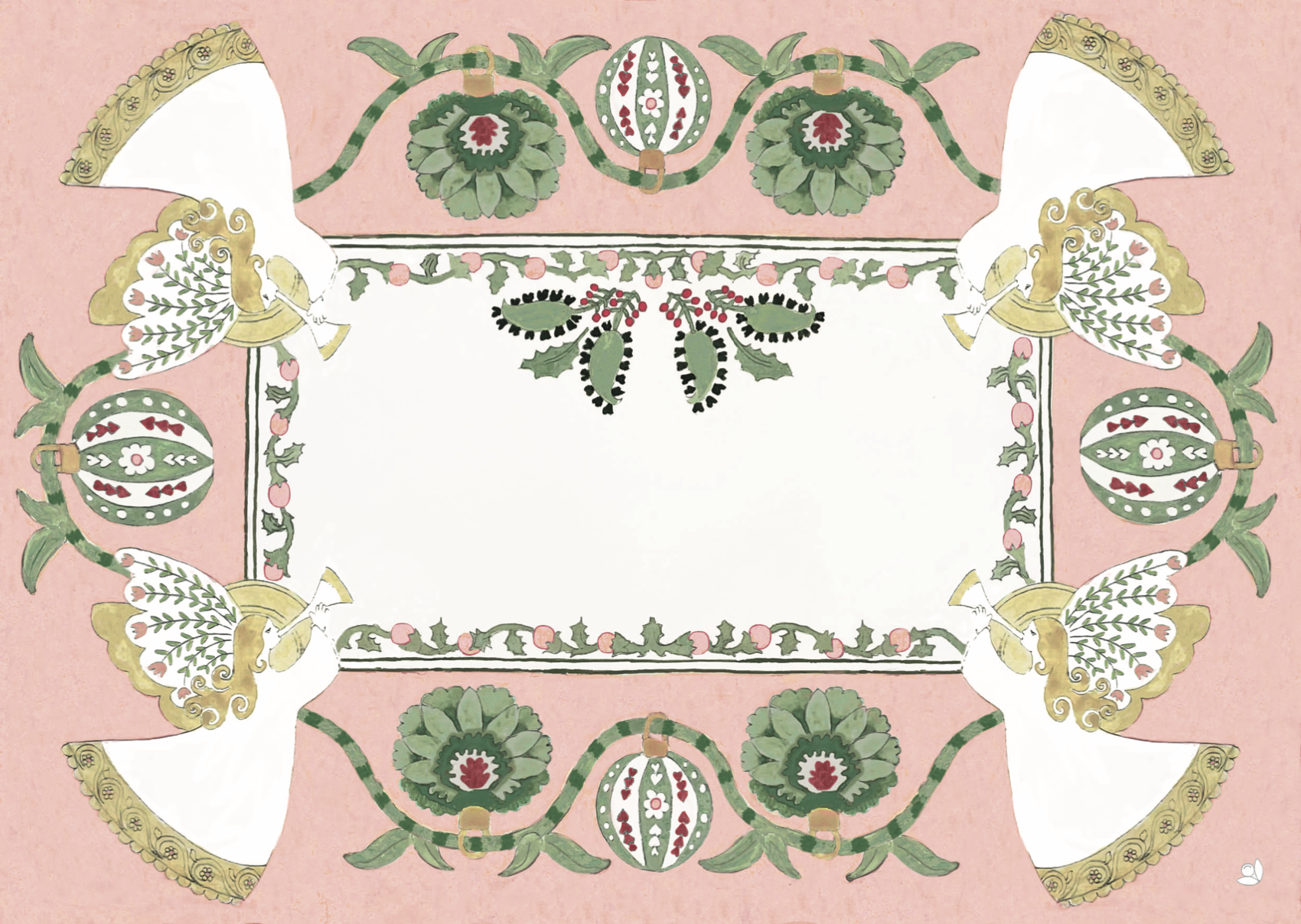 Our Suzani-Angel placemats are disposable, and sold in convenient 12 page placemats books. Inspired by elements of naive folk art, each book has a sequence of four different folk designs, lovingly created and hand painted in our studio. Merry Christmas!